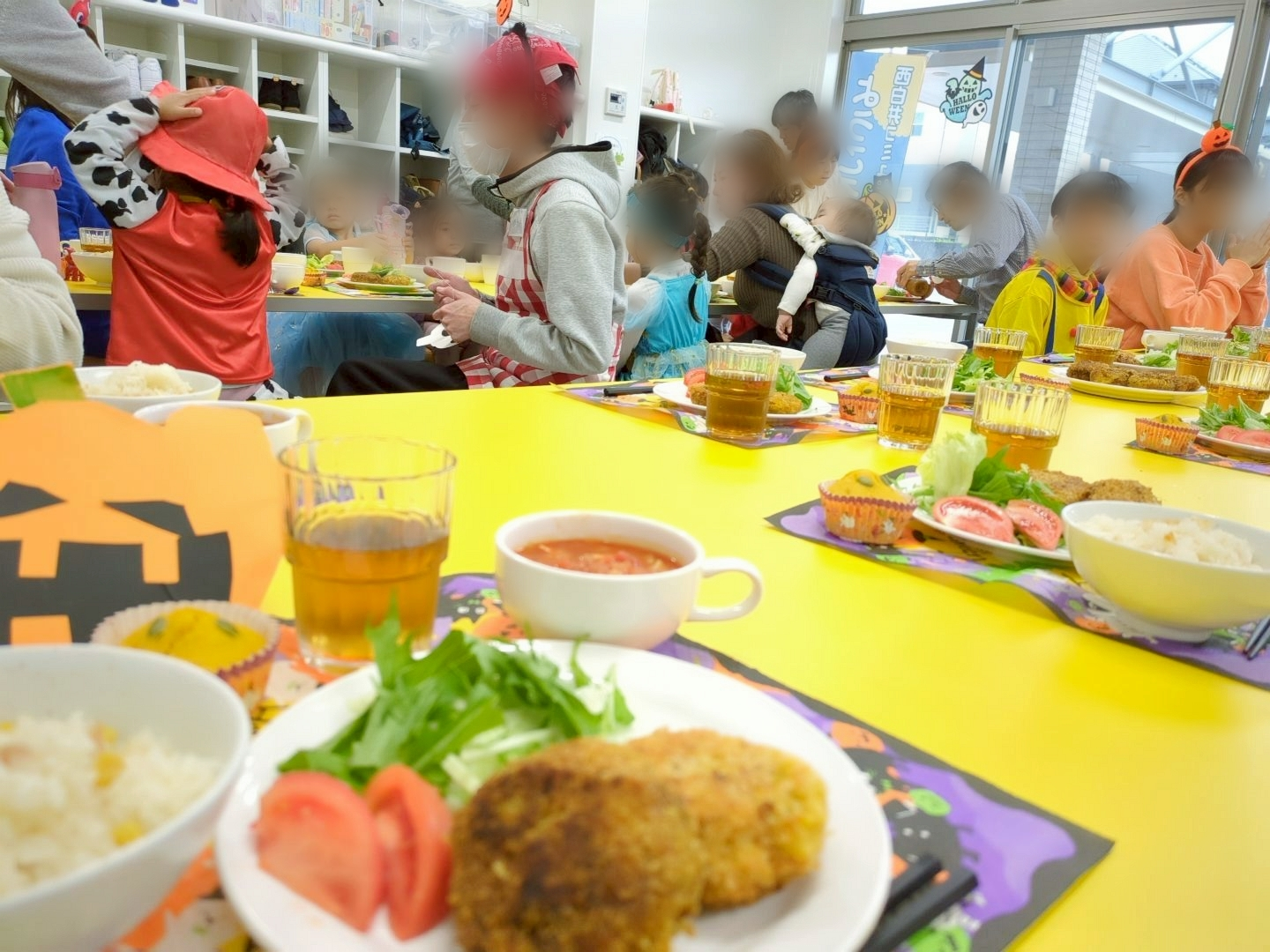 ハロウィンが近いということでお菓子もたくさん用意されていて子どもたちも自由に食べていました。