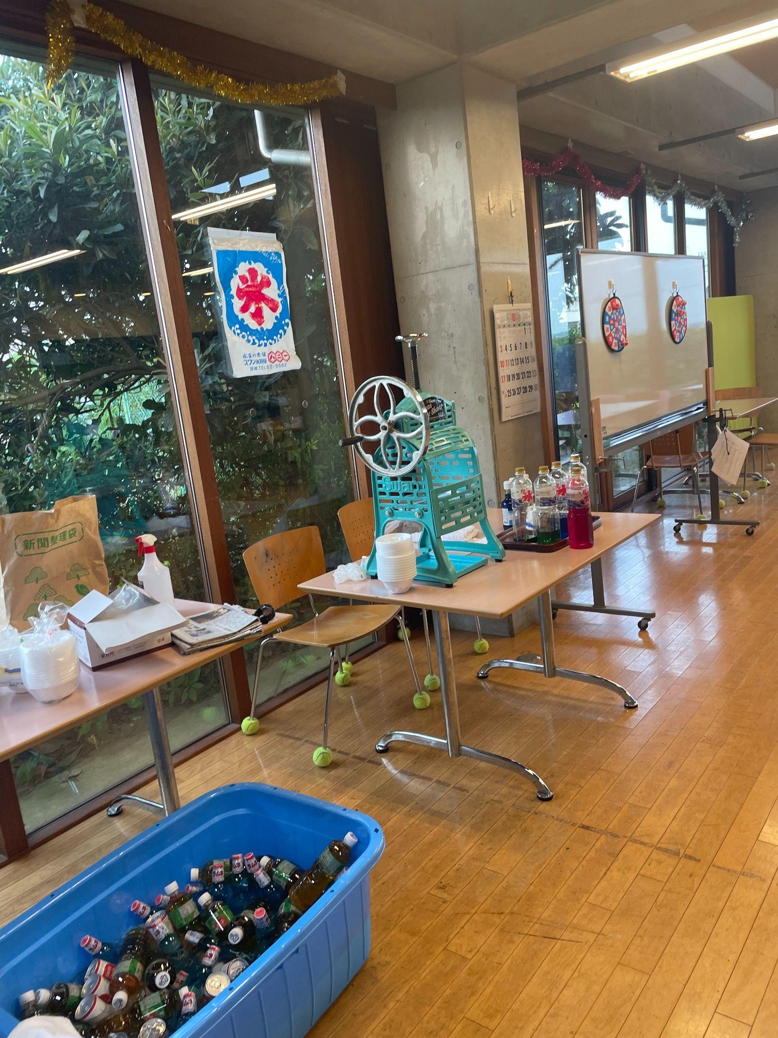 この日はセンターの中でかき氷とジュースがもらえる縁日が開かれていました。