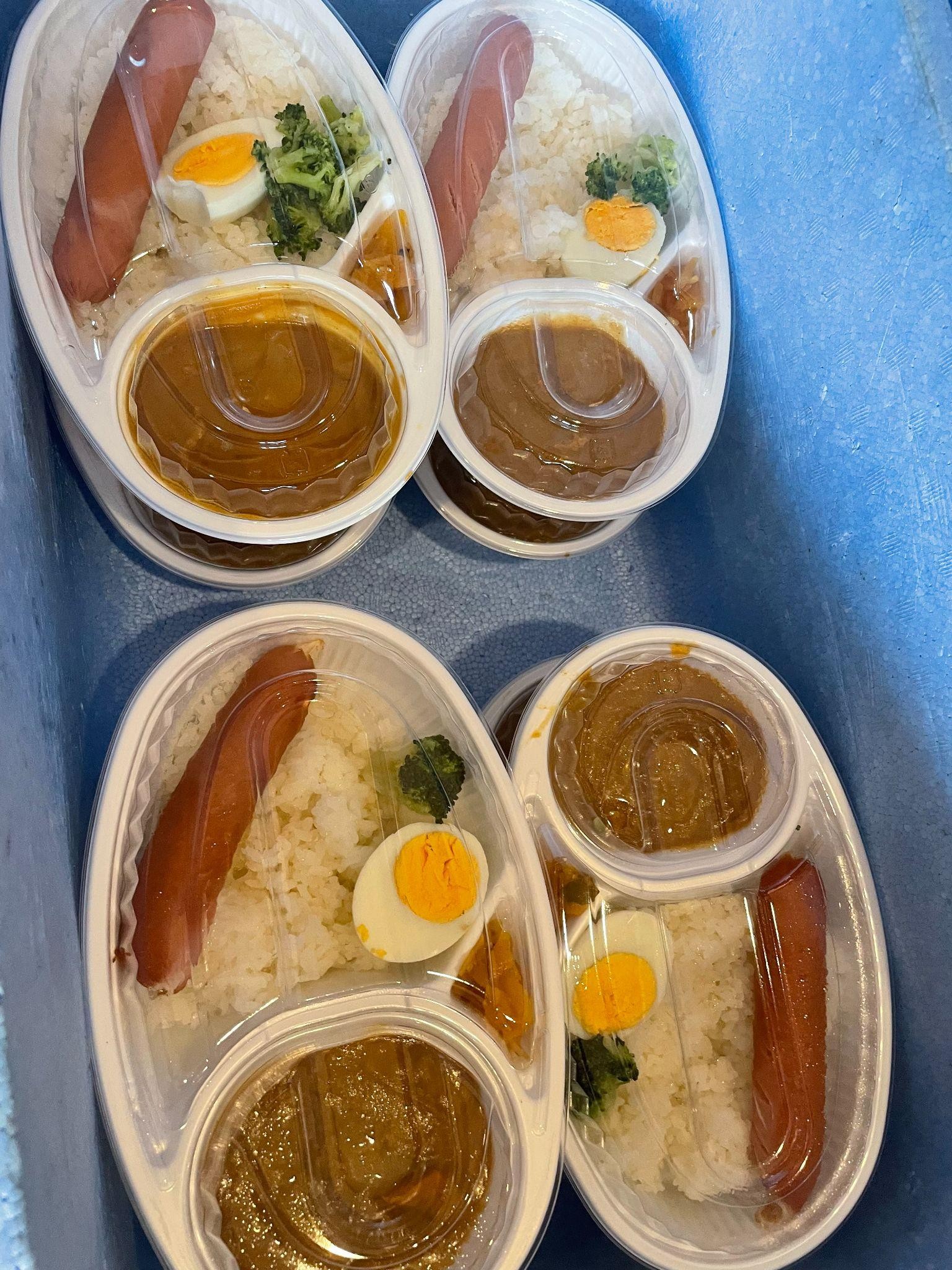 この日のメニューはカレーうどんに餃子(餃子はガス管ホットプレートを使用し焼かれていました)、