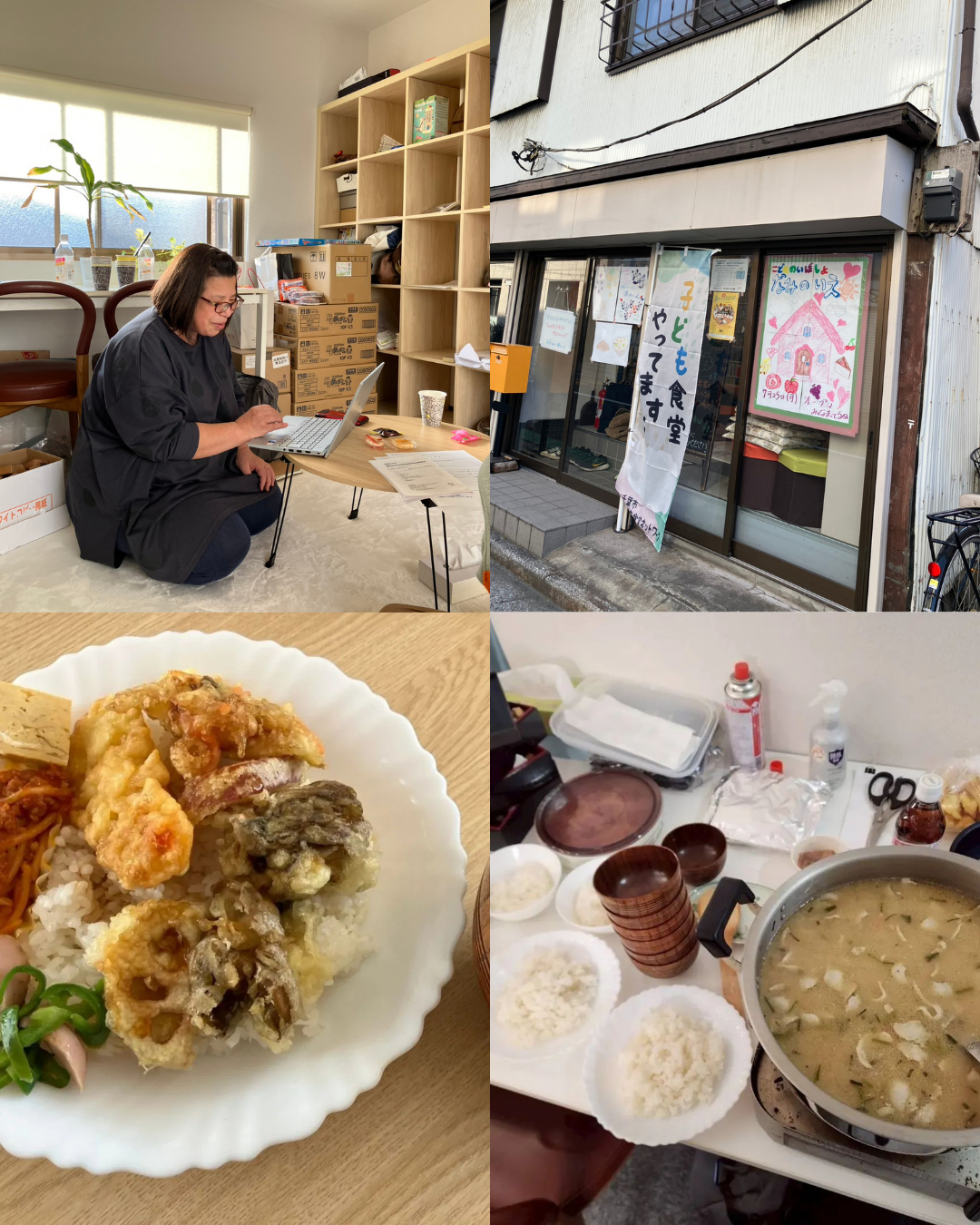 食事も温かいご飯とてんぷらと豚汁他。家で一人さみしく食事をしている方がいたら、ぜひ行ってみてほしいと思いました。私自身も何かお手伝いできることがあればと思うので、またお邪魔したいなと思います。