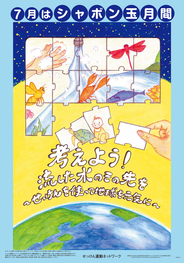 *ご応募いただいた作品はご返却できませんのでご了承ください。また、採用、不採用に関わらず、せっけん運動ネットワークホームページにて紹介させていただく場合があります。但し、提出者の「氏名」については、許可なく掲載することはありません。
