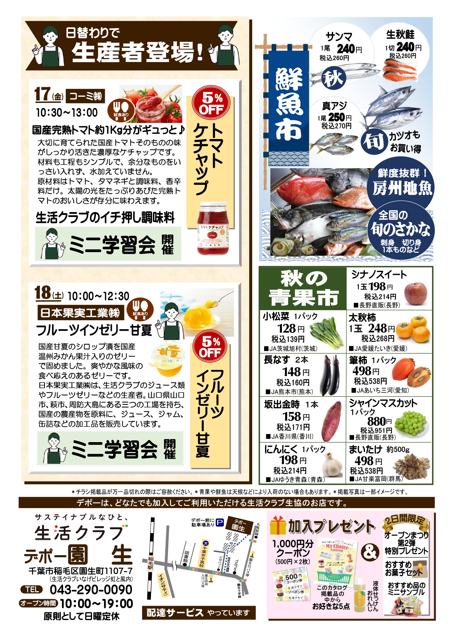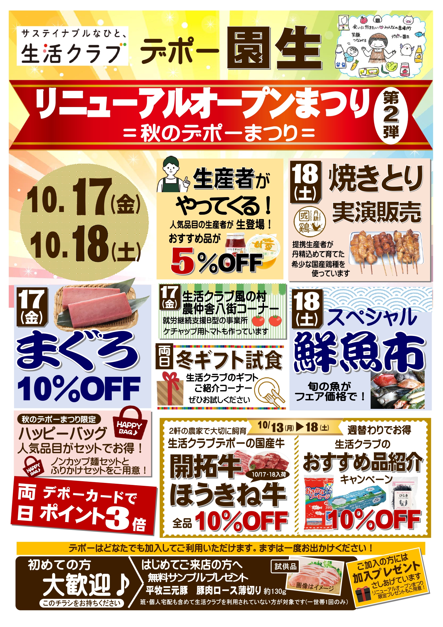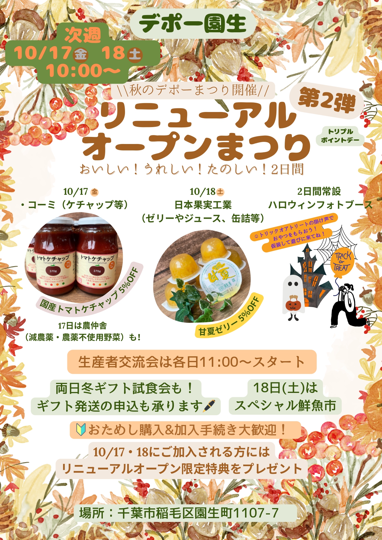 詳細はチラシ、デポー園生Instagramをご覧ください。