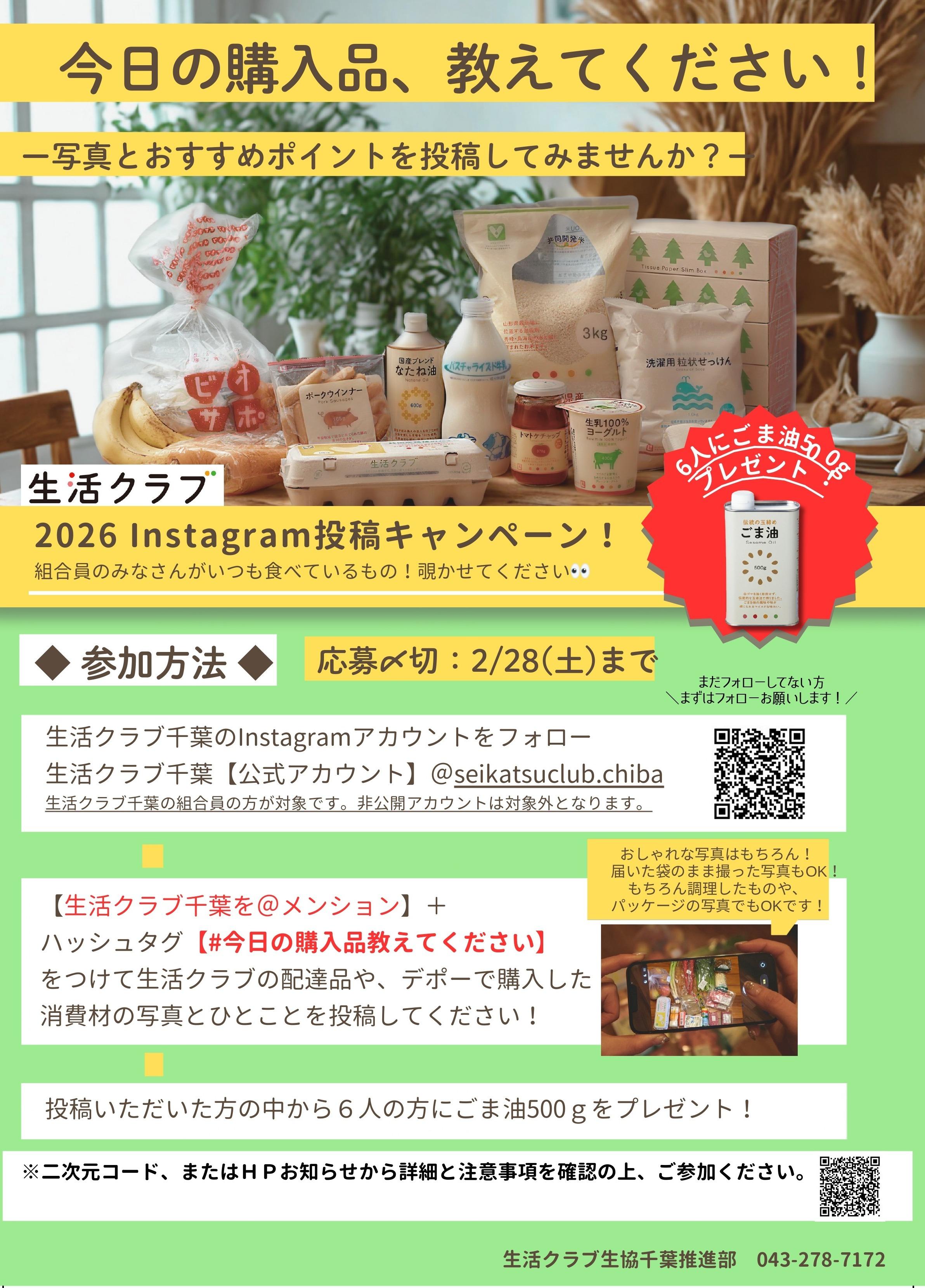 ・投稿を生活クラブ千葉公式Instagramアカウント(@seikatsuclub.chiba)でご紹介(リポスト)させていただく場合があります。