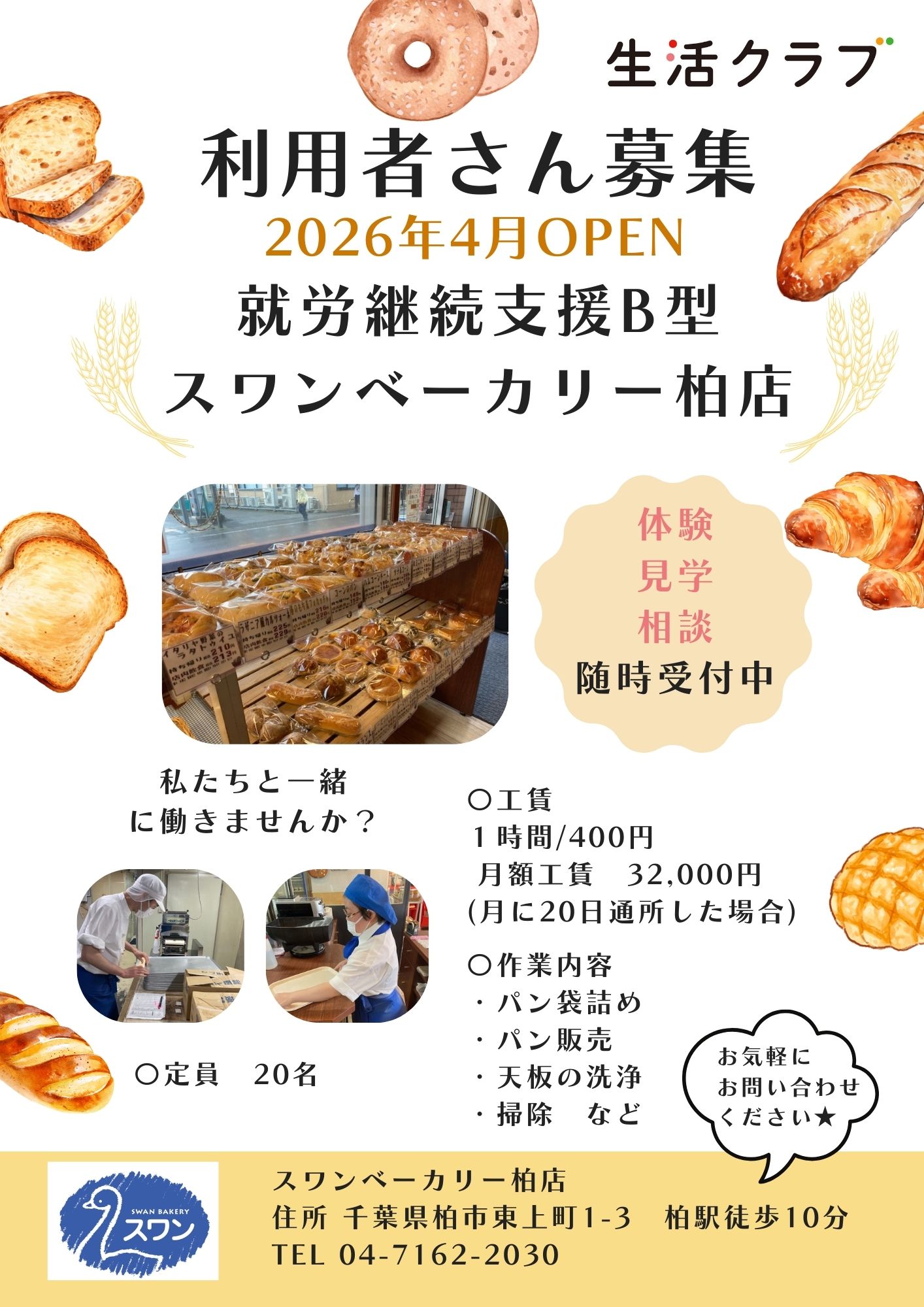 【スワンベーカリー柏店の見学】*当日案内をおこない、希望者のみ