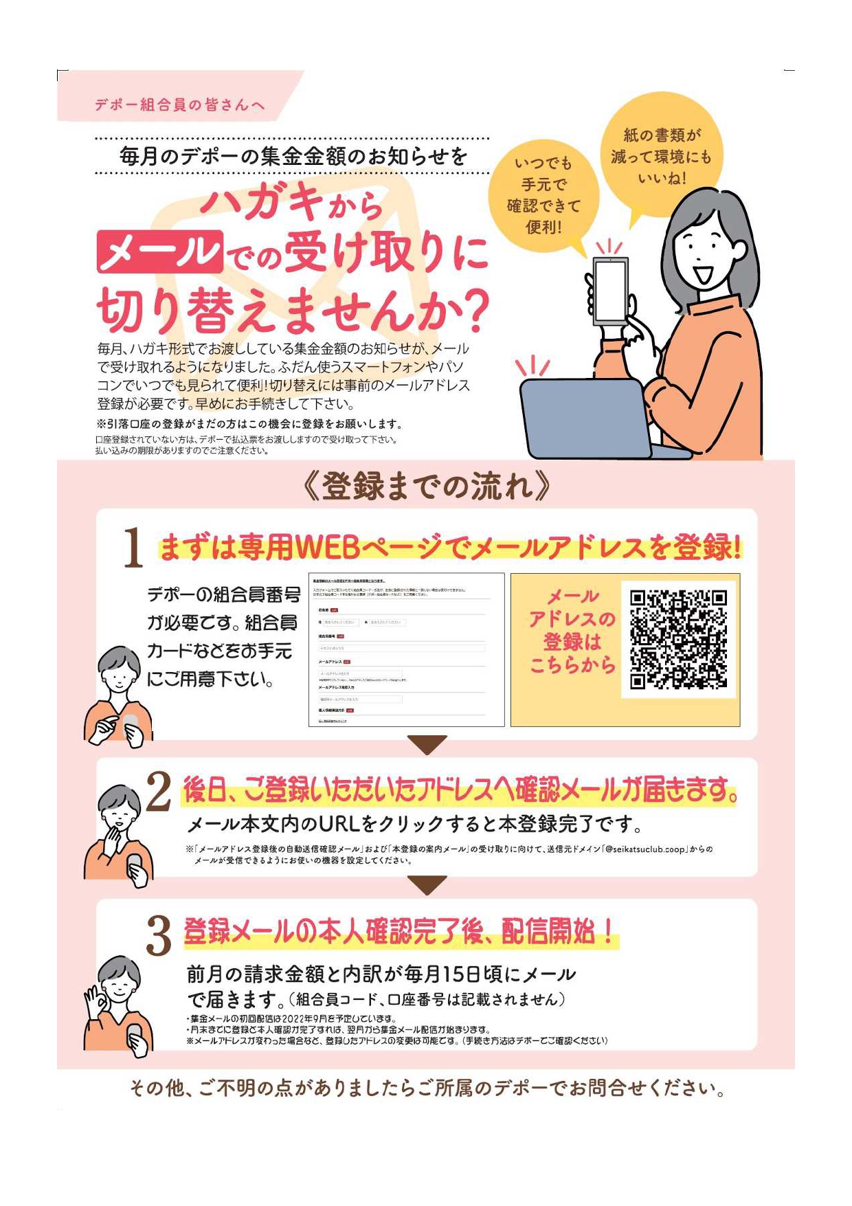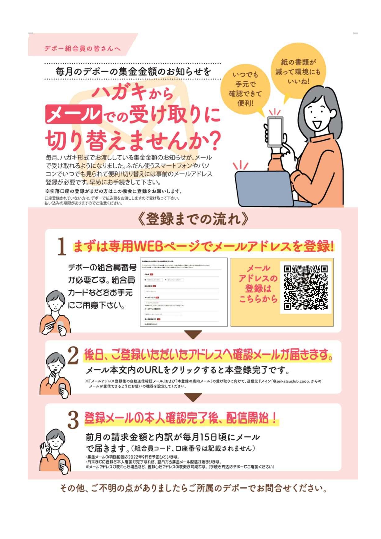 デポー集金金額のお知らせをハガキからメールでの受け取りに変更するにはこちら