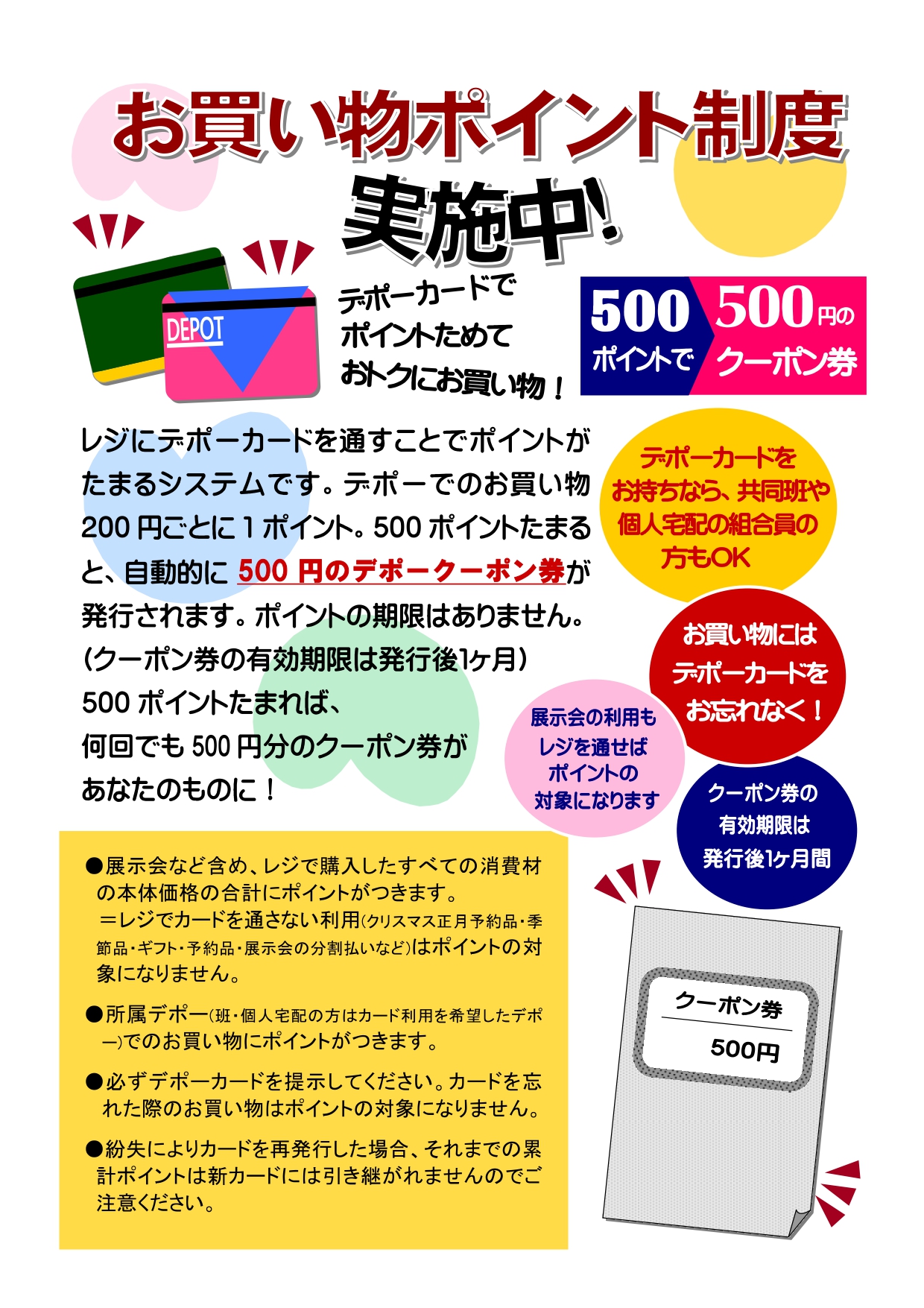 ※デポーのみの組合員の方が、班・個別配送利用へ変更する際にもデポーへご連絡ください。