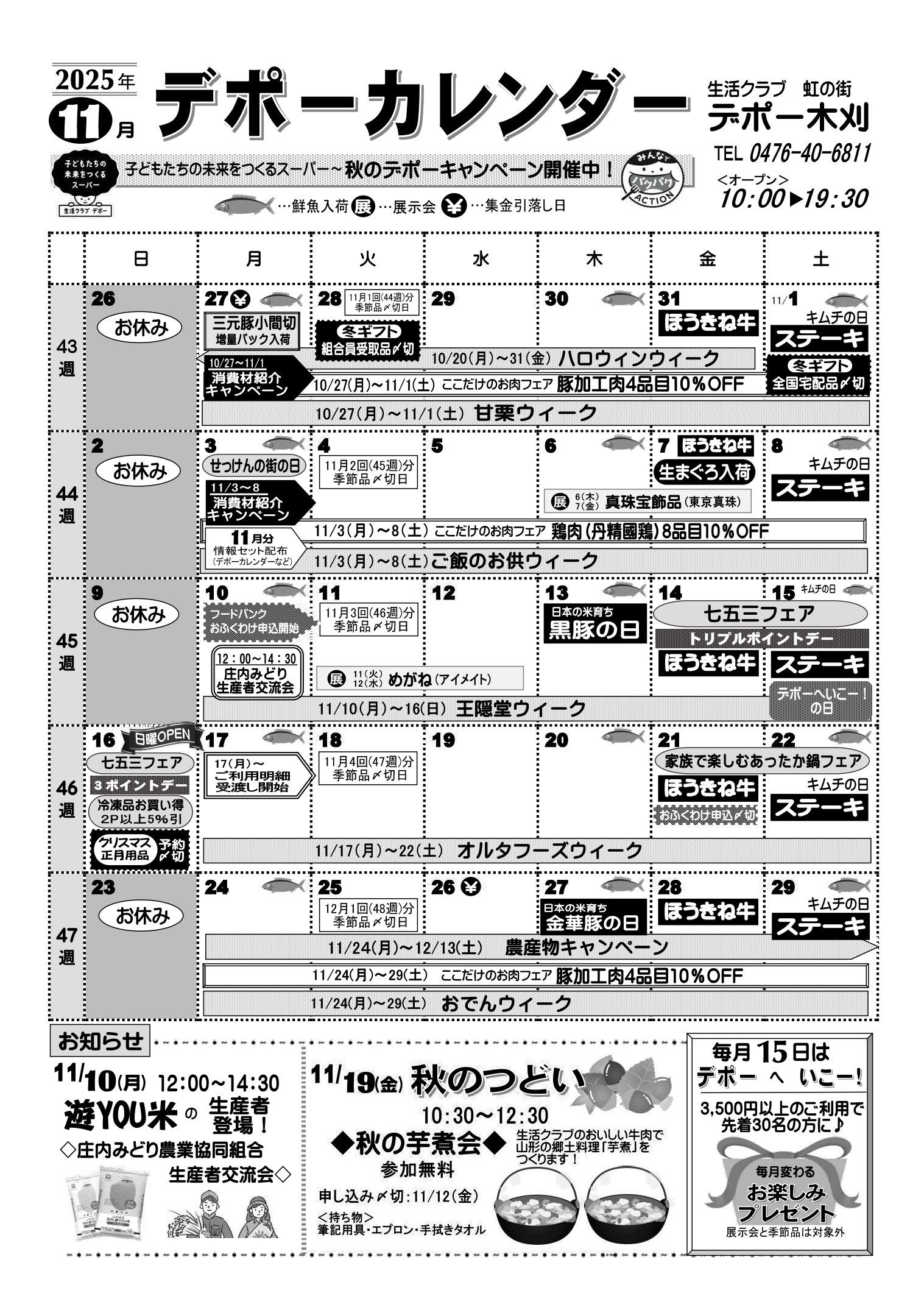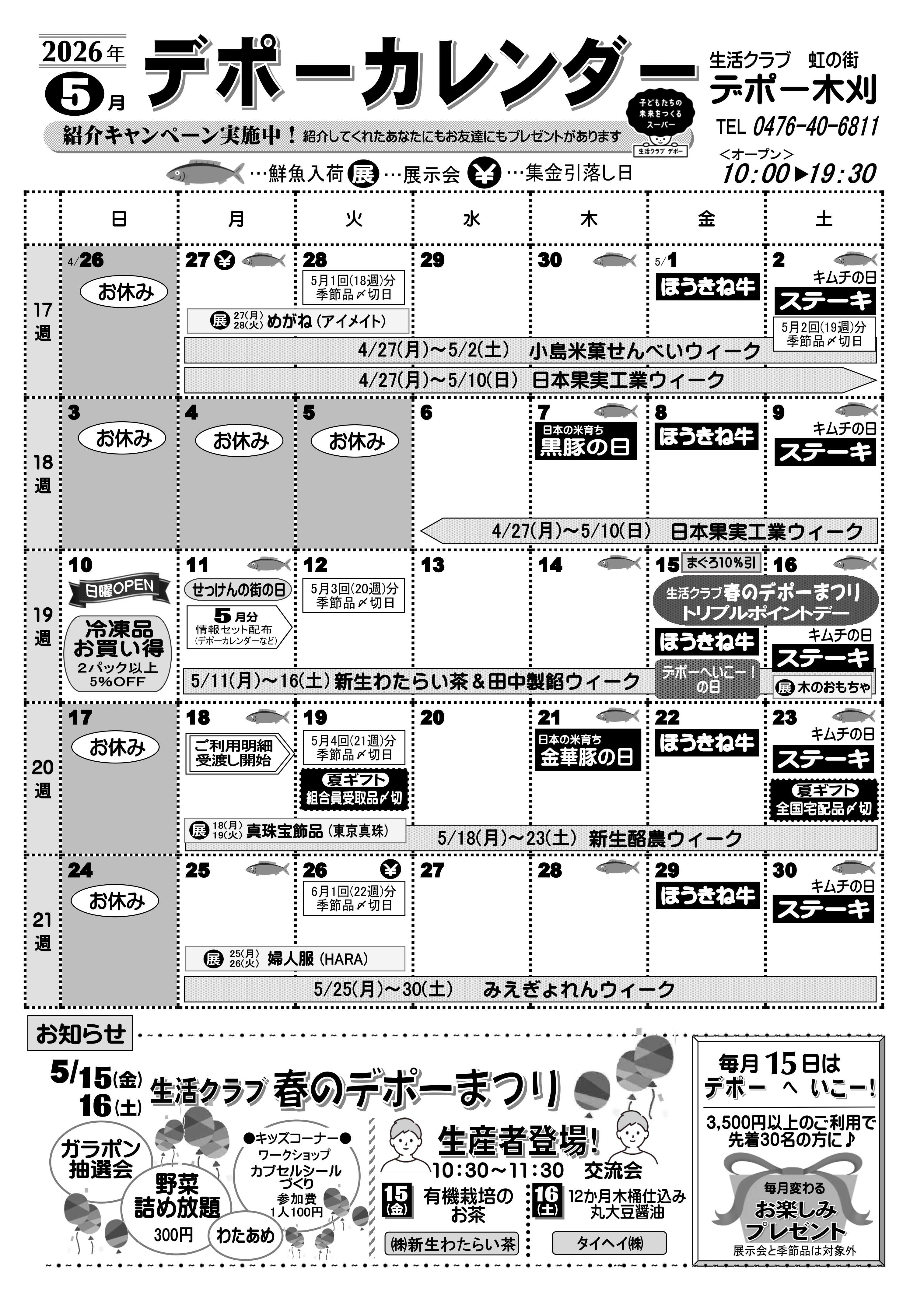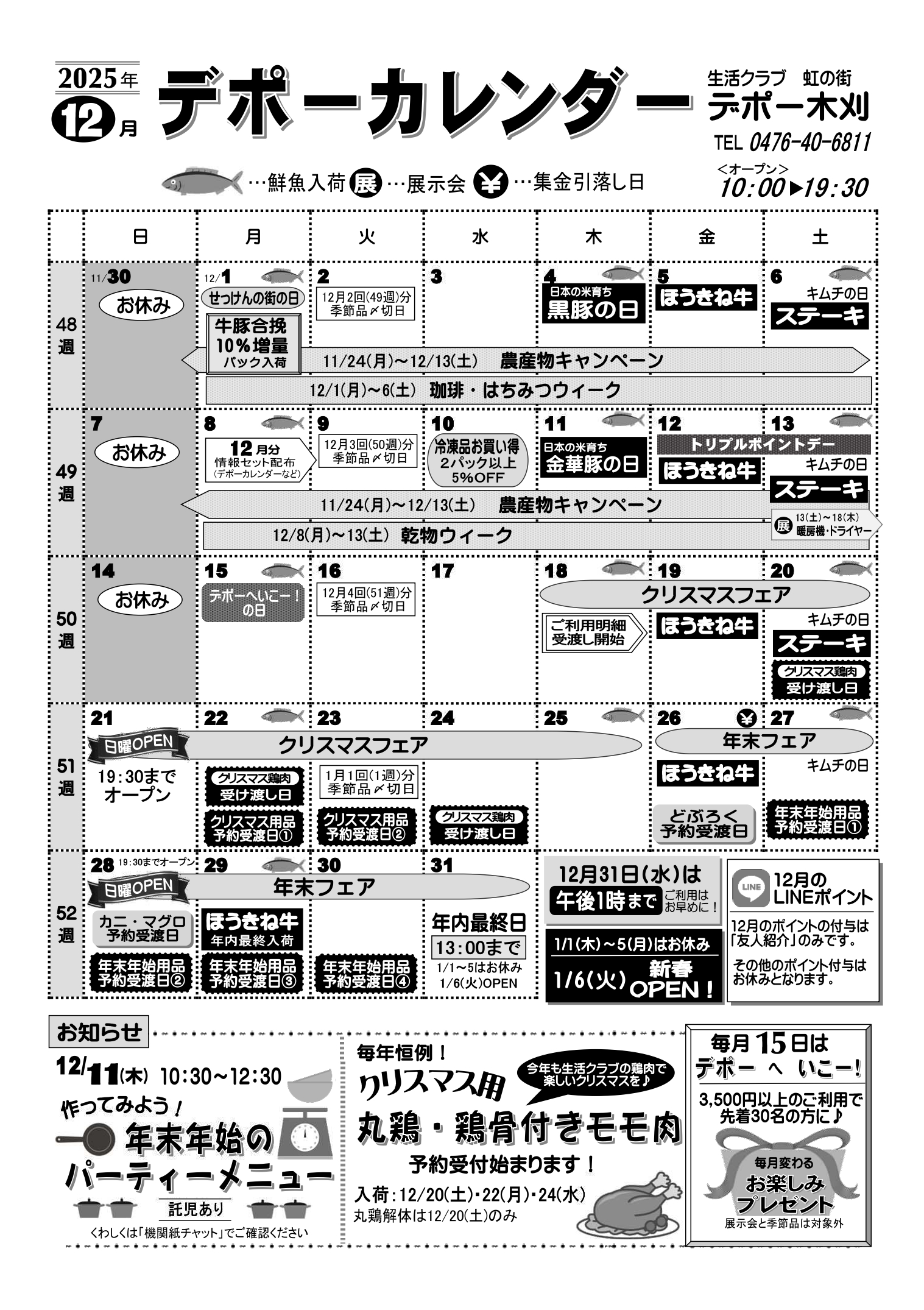 | 受付方法 | ●TEL・FAXでご注文 お天気の悪い日、体調のすぐれないときなどお出かけしなくても大丈夫!食品から雑貨まで当日デポーにあるものならなんでもOKです。