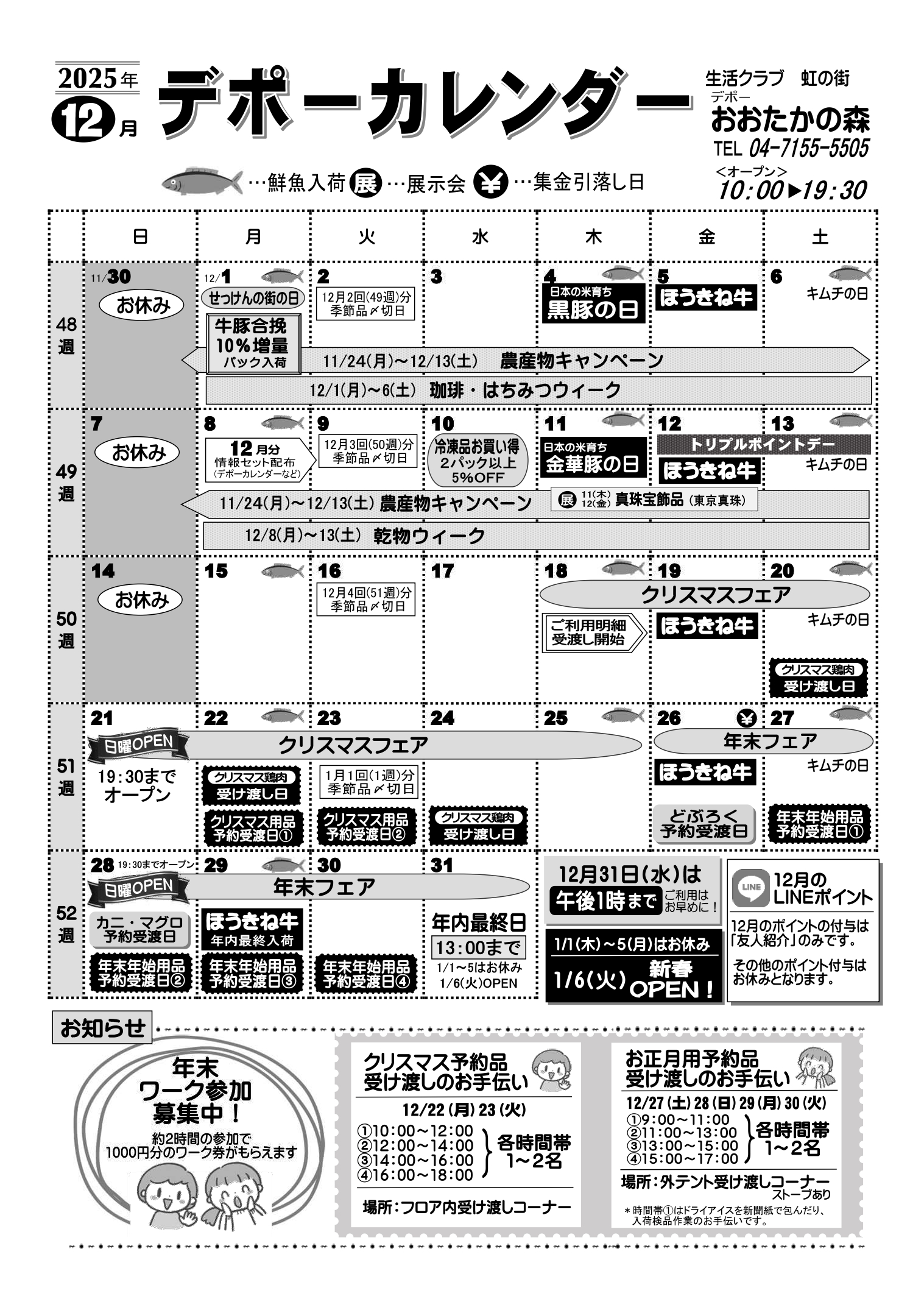 | 開所時間 | 【月~土】 10:00~19:30 休店日はデポーカレンダーをご確認ください。 |