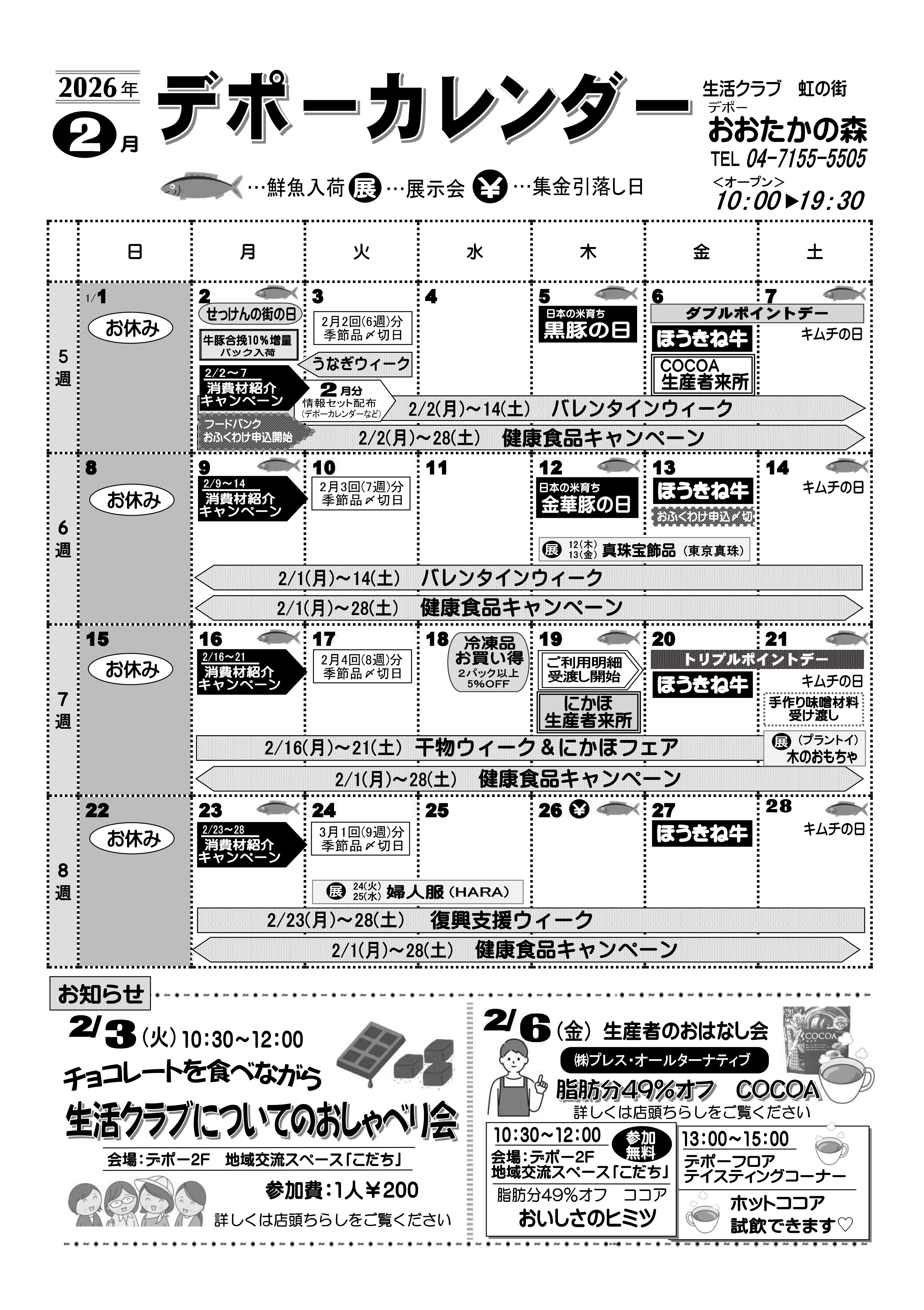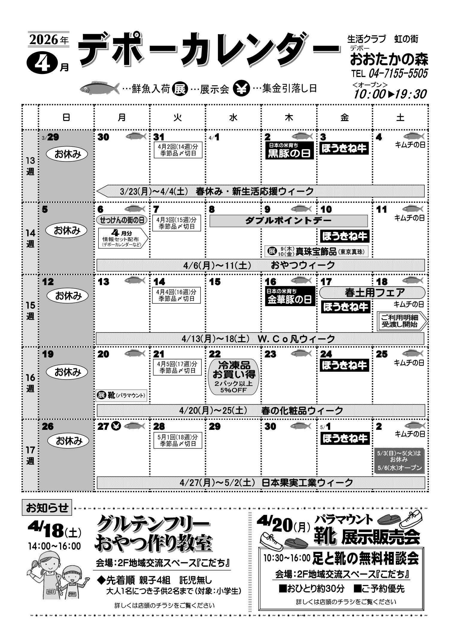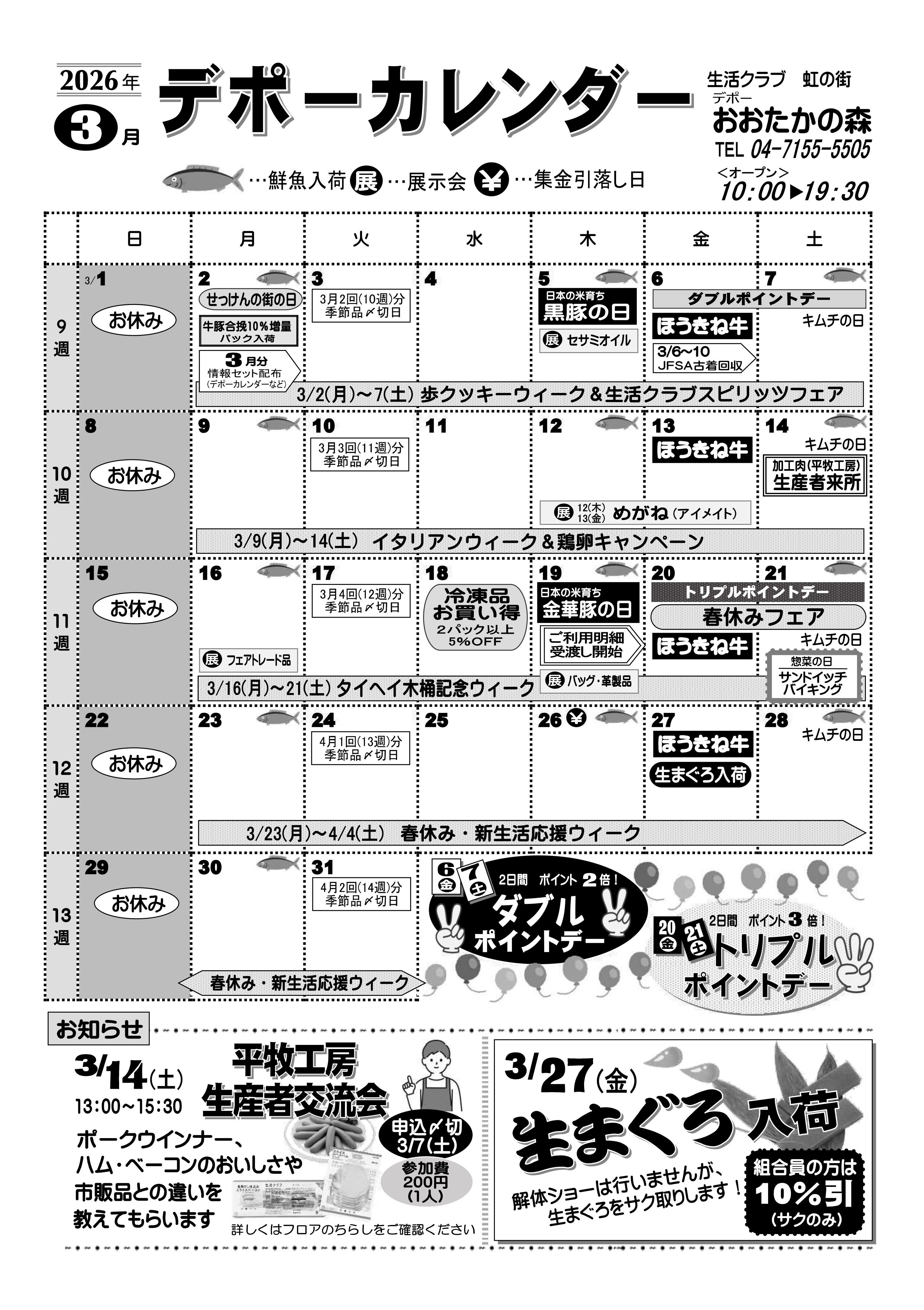 | 受付方法 | ●TEL・FAXでご注文 お天気の悪い日、体調のすぐれないときなどお出かけしなくても大丈夫!食品から雑貨まで当日デポーにあるものならなんでもOKです。