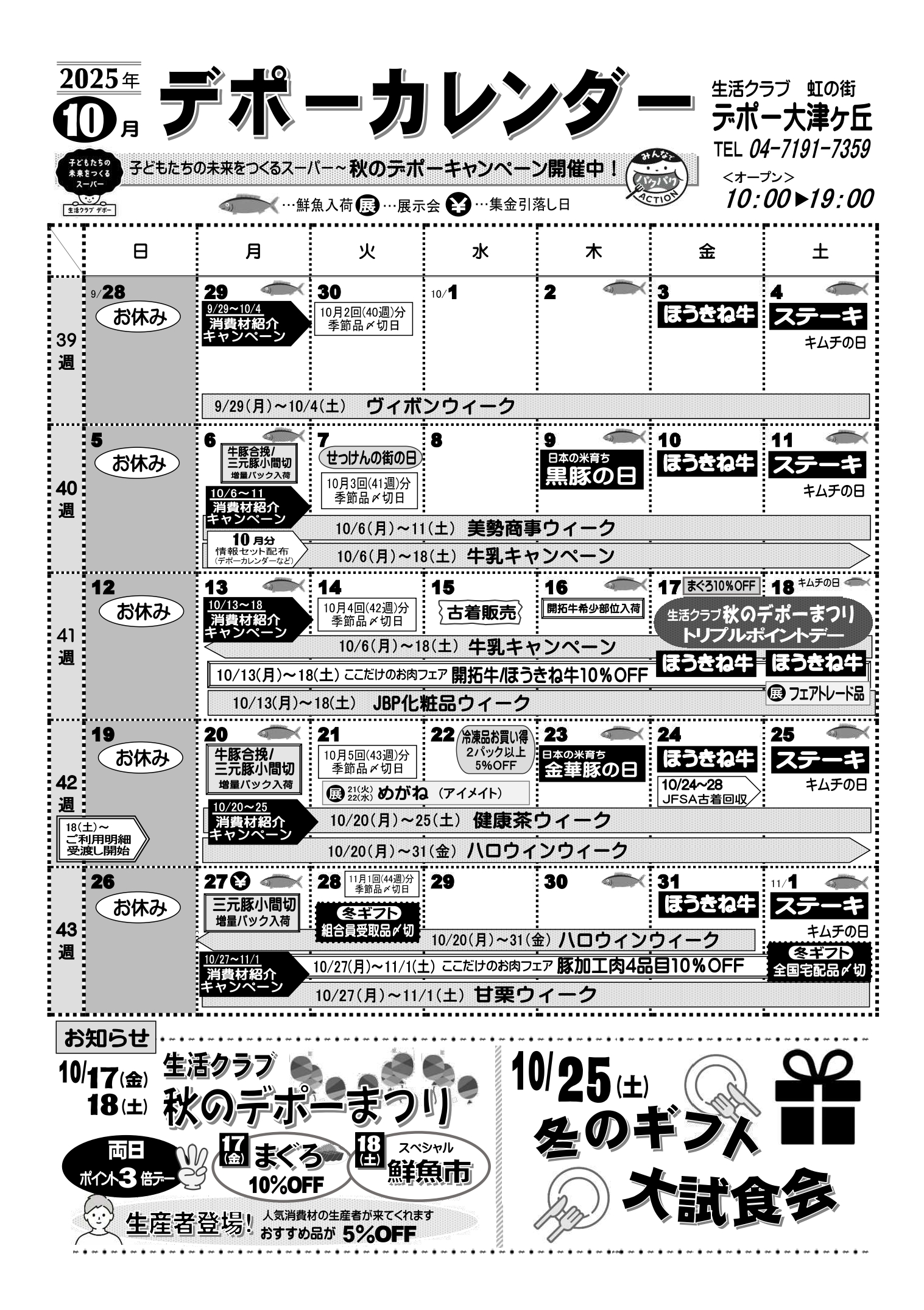 開所時間 | 【月~土】 10:00~19:00 休店日はデポーカレンダーをご確認ください。 |