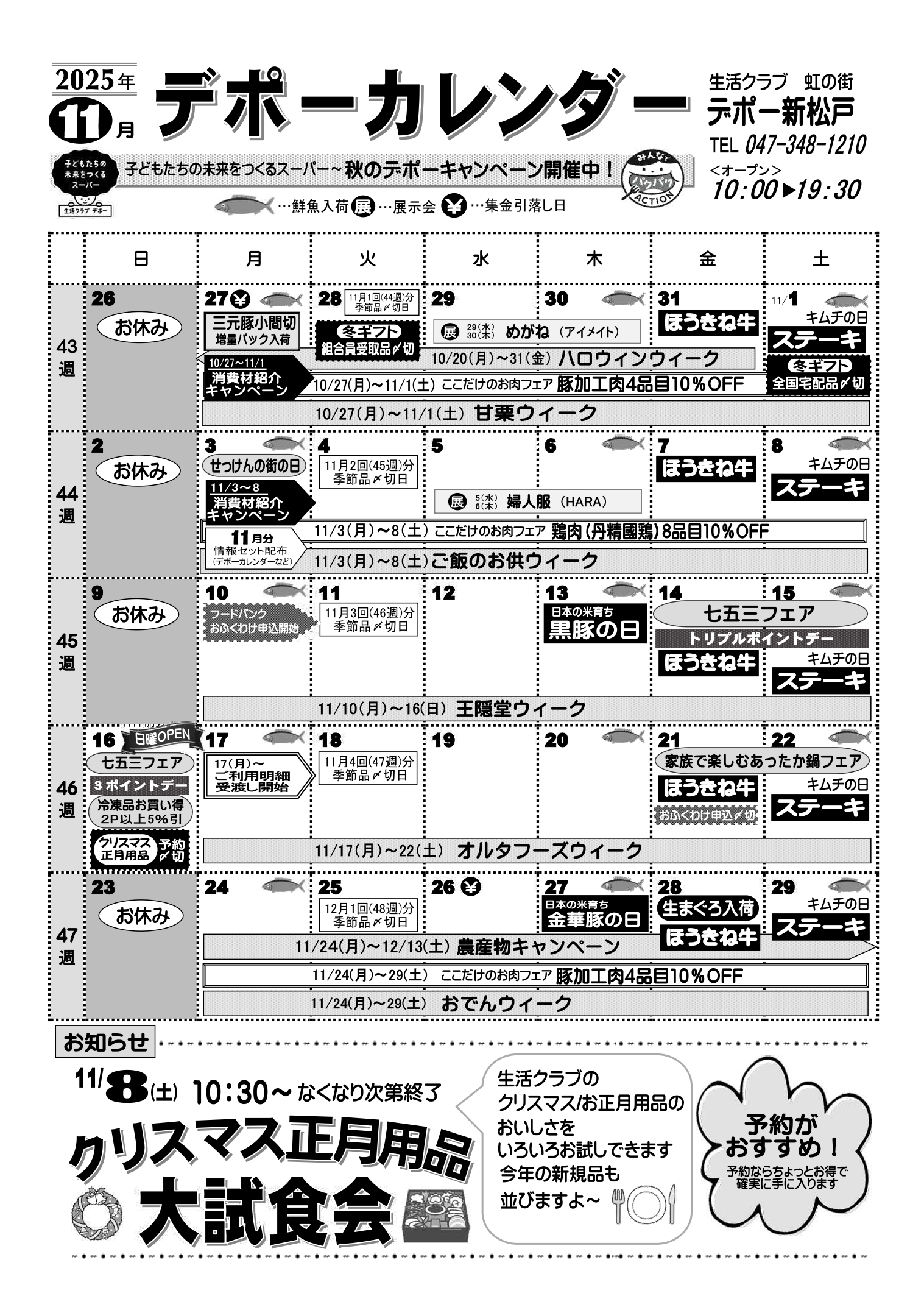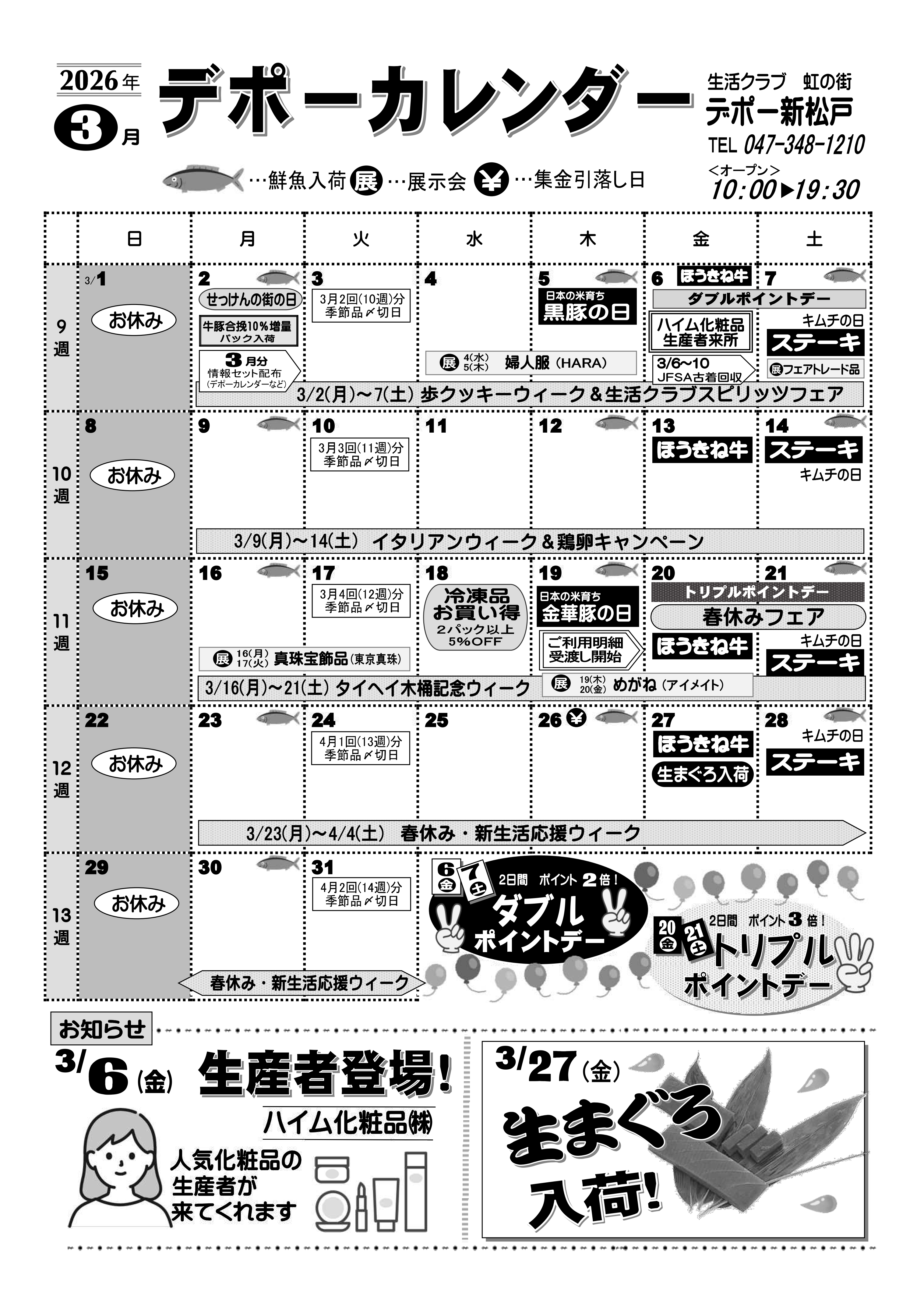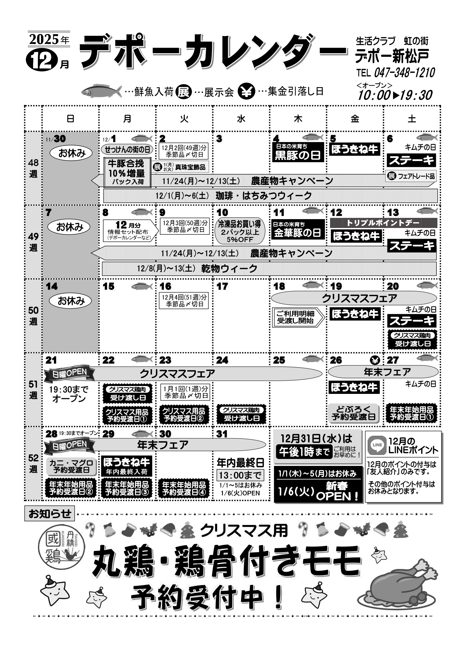 | 開所時間 | 【平日・祝日】 10:00~19:30 休店日はデポーカレンダーをご確認ください。 |