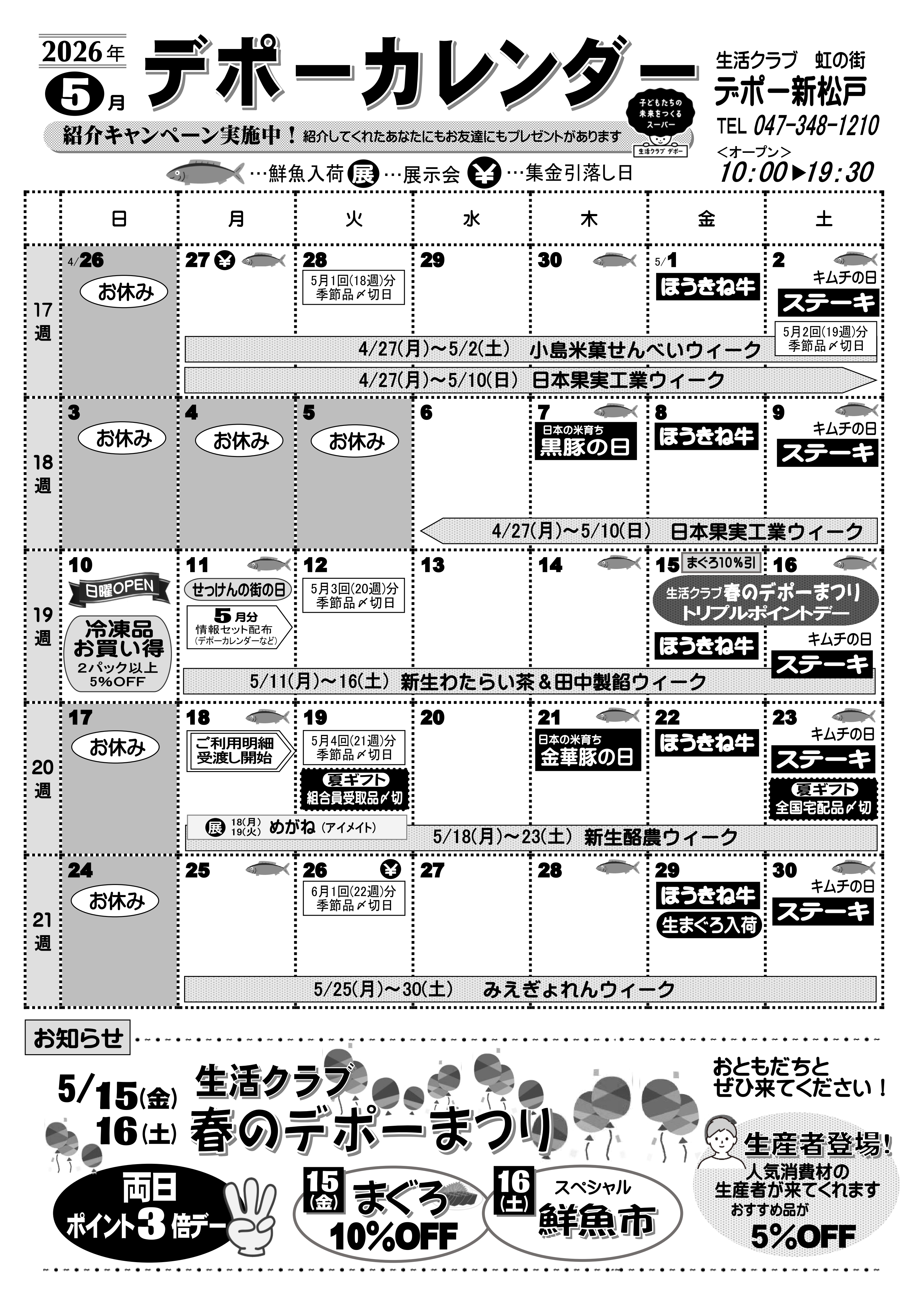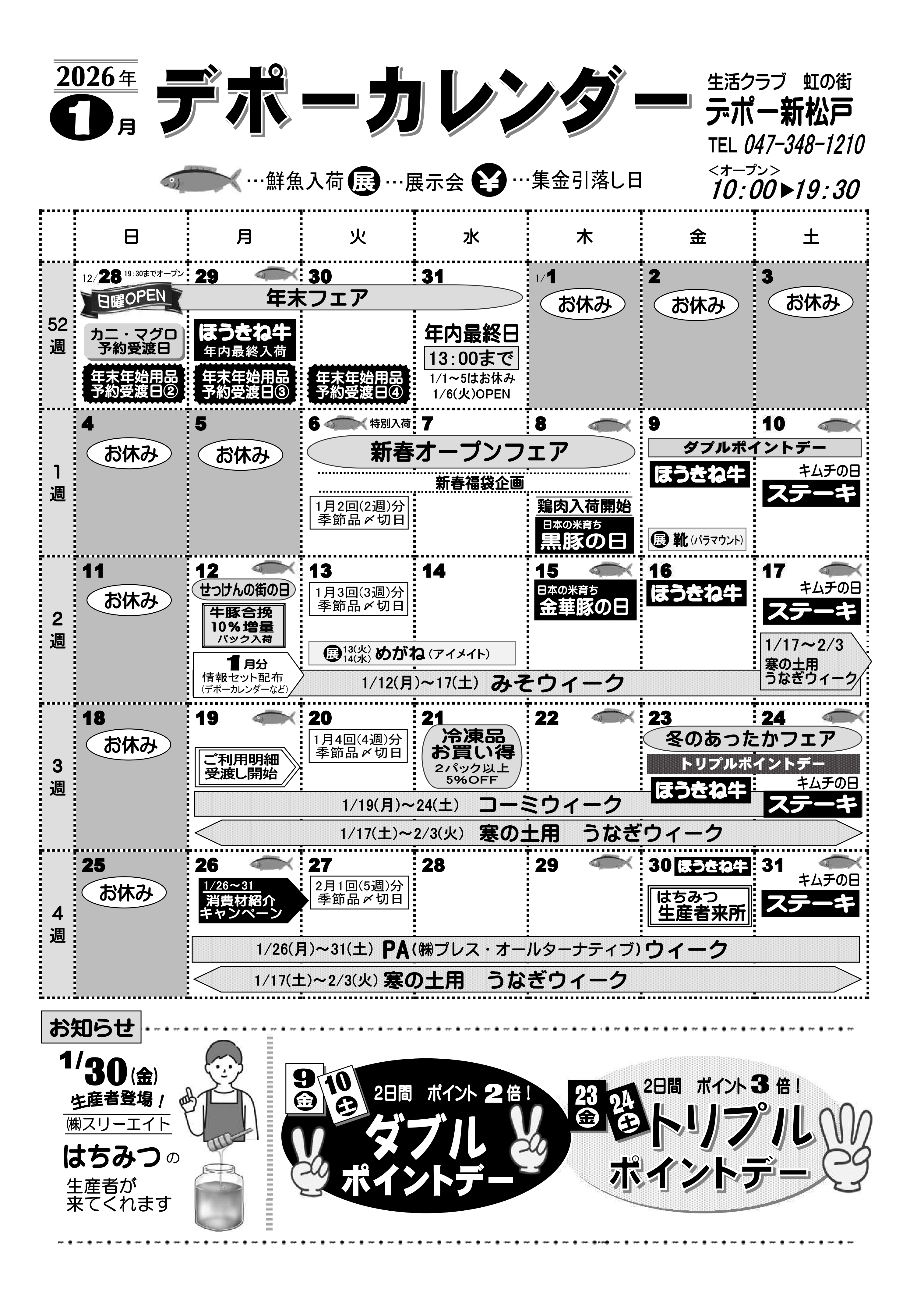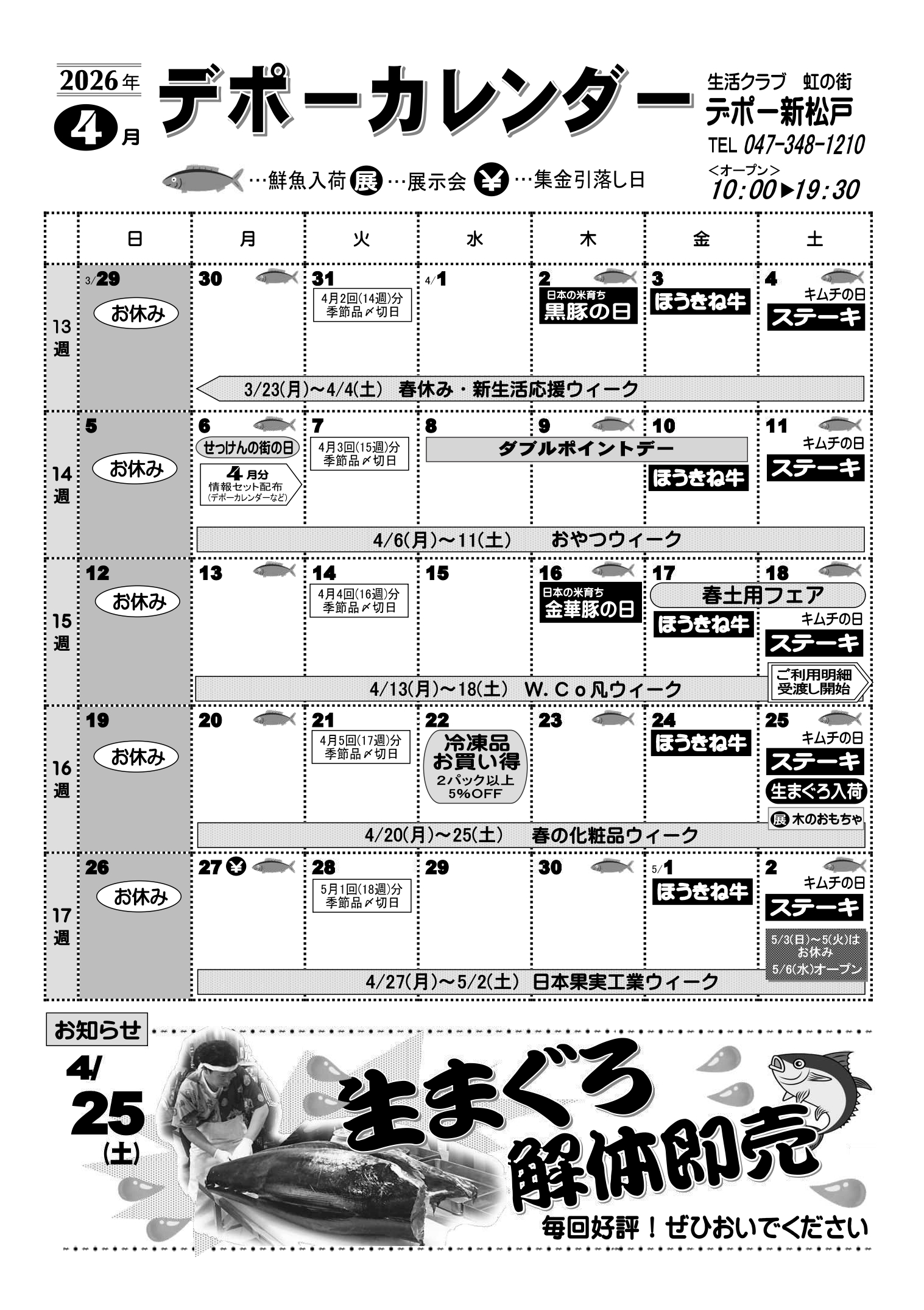 | 開所時間 | 【平日・祝日】 10:00~19:30 休店日はデポーカレンダーをご確認ください。 |